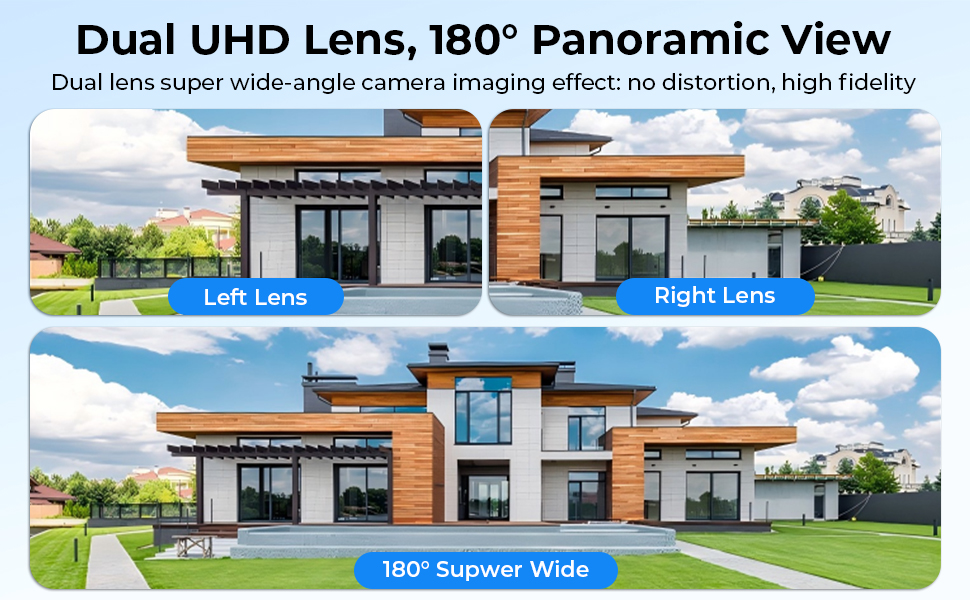 - * Vista revolucionaria de 180° y cobertura de 360°:Esta innovadora cámara de seguridad cuenta con doble lente que se une inteligentemente para una vista ultra amplia de 180° sin interrupciones. Vea toda su propiedad, de cerca a cerca, en un solo cuadro. Con un paneo de 355° y una inclinación de 90°, garantiza que nada pase desapercibido. Ideal para monitoreo de granjas, vigilancia empresarial, patios residenciales, garajes y obras de construcción.