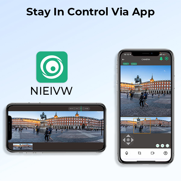 Libérate de los límites de las cámaras tradicionales de 110°. Nuestra innovadora cámara de seguridad 4G combina sin problemas las imágenes de dos lentes en una vista ultraancha impresionante de 180°, brindándote una visión completa de tu propiedad en un solo cuadro. ¿Necesitas más control? Utiliza el giro de 355° y la inclinación de 90° directamente desde tu teléfono para acercarte a áreas clave. Perfecta para granjas, estacionamientos, calles concurridas y patios traseros amplios.